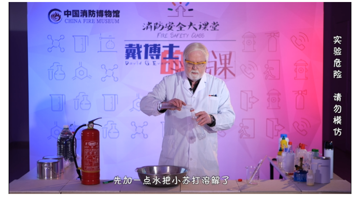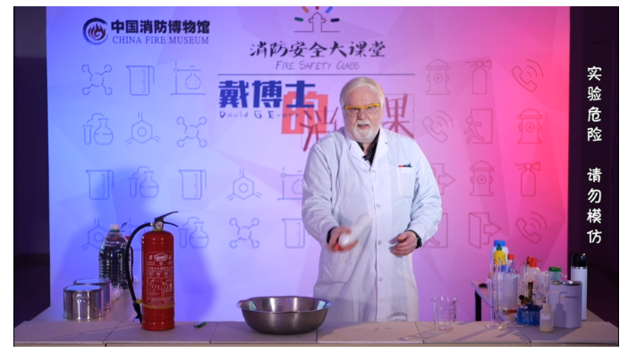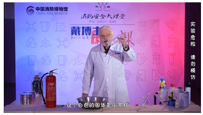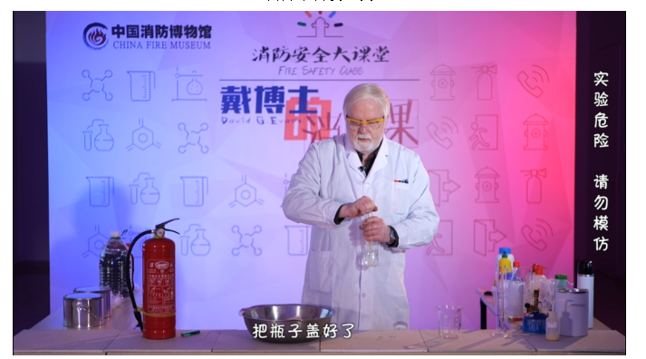 The winner of China’s “International Science and Technology Cooperation Award”, the distinguished professor of Beijing University of Chemical Technology, Dr. David G. Evans, use the following small experiment to demonstrate how a fire extinguisher can extinguish a fire